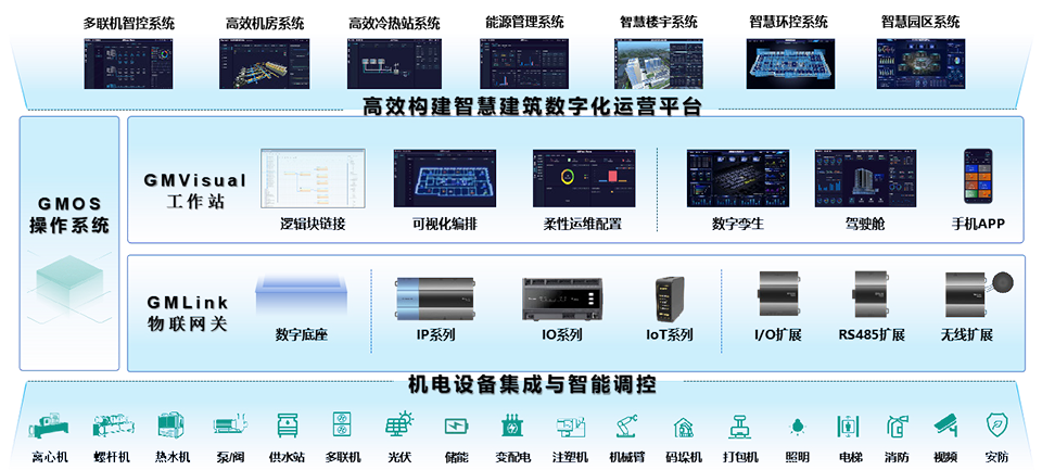 建筑機電領(lǐng)域?qū)俚拈_放式 GMOS 操作系統(tǒng),并以之為核心推出樓宇智控系統(tǒng),包含物聯(lián)網(wǎng)關(guān)、工作站、行業(yè)解決方案,徹底解決設(shè)備聯(lián)接調(diào)試周期長、工程需每單 定制的行業(yè)難題,實現(xiàn)對建筑內(nèi)機電設(shè)備的集中監(jiān)控和智慧管理。