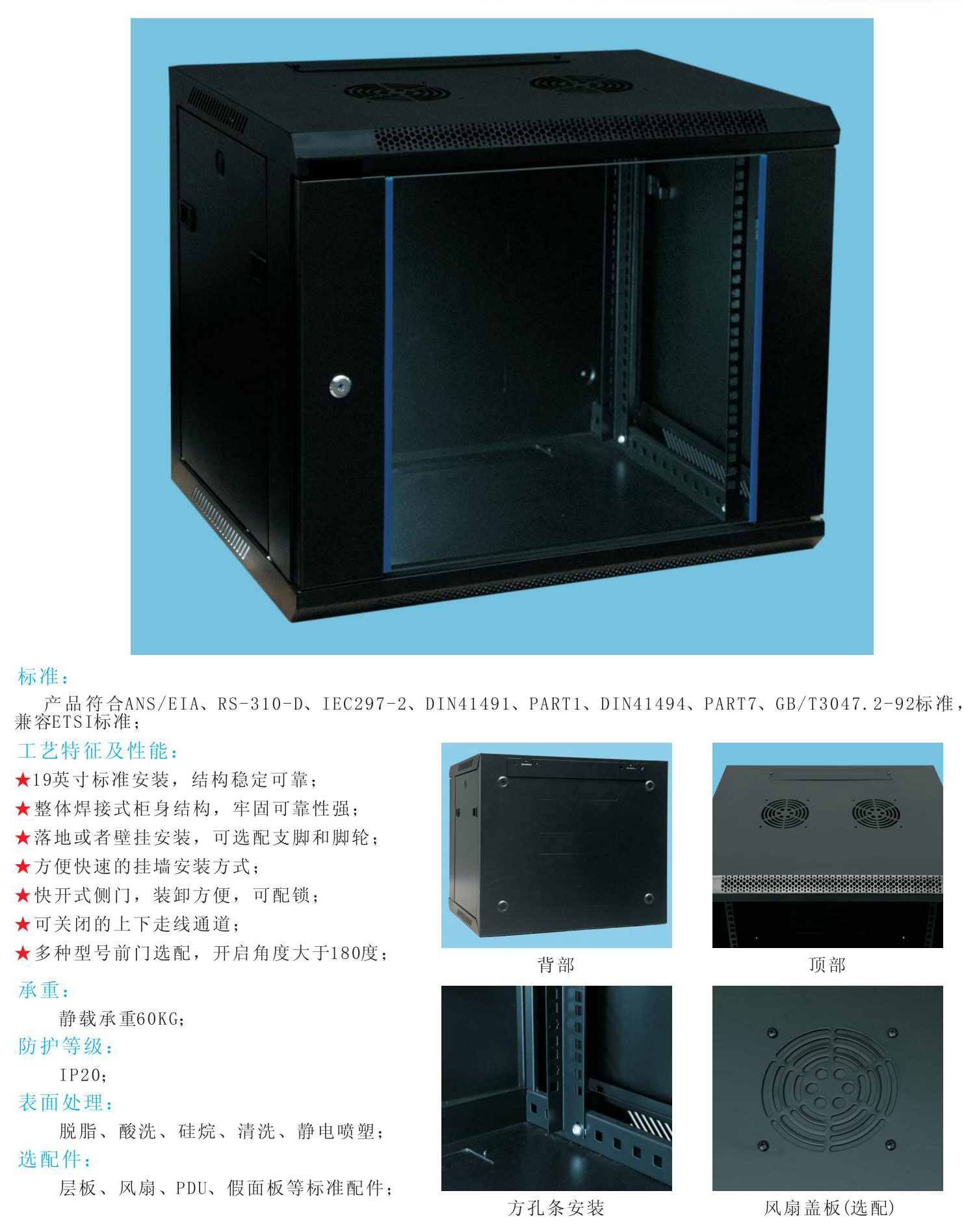 選配件:層板、風(fēng)扇、PDU、假面板等標(biāo)準(zhǔn)配件;